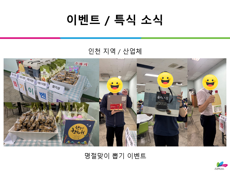 이벤트 / 특식 소식 _ 인천 지역 / 산업체 _ 명절맞이 뽑기 이벤트 등록일2025.09.26 조회수20 댓글 0댓글쓰기 댓글목록 등록된 댓글이 없습니다. 이전글 이전 글이 없습니다. 다음글 이벤트 / 특식 소식 _ 경기 지역 / 산업체 _ 갈비찜 & 탕수육 고객희망메뉴 특식 목록